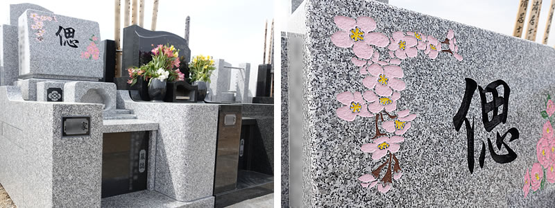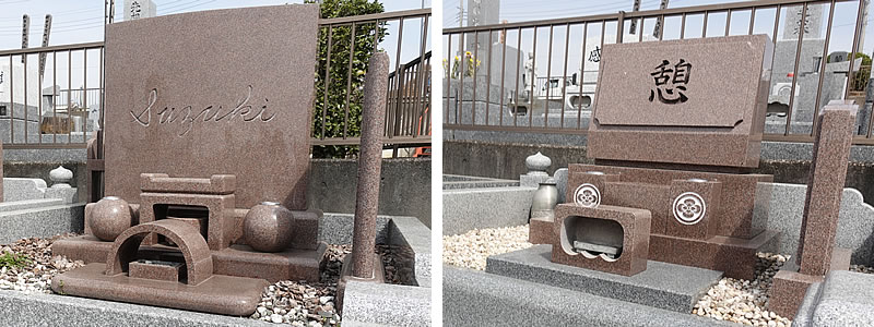 和型洋型のご要望だけでなく、彫刻する文字内容や石の種類(色)なども、ご要望に合わせた設計が可能の人気の区画です。